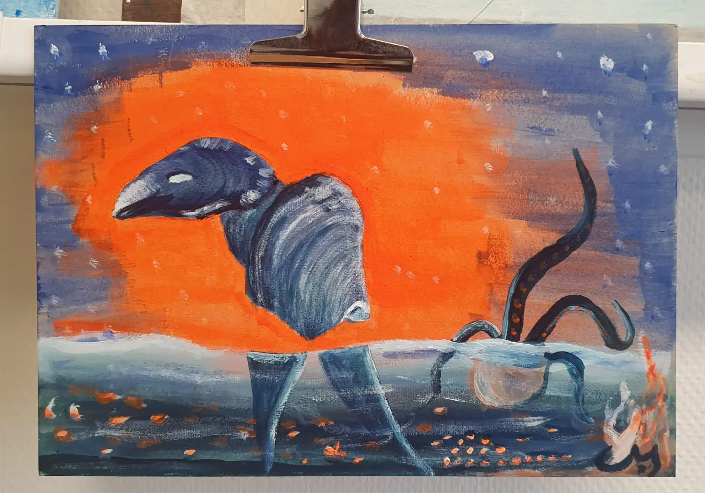 Shell creature – Acrylic on cardboard, april 2023